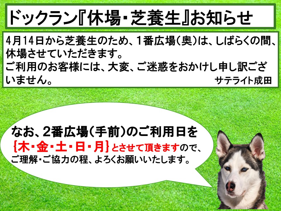 ドッグラン1番広場『芝生養生休場』のお知らせ