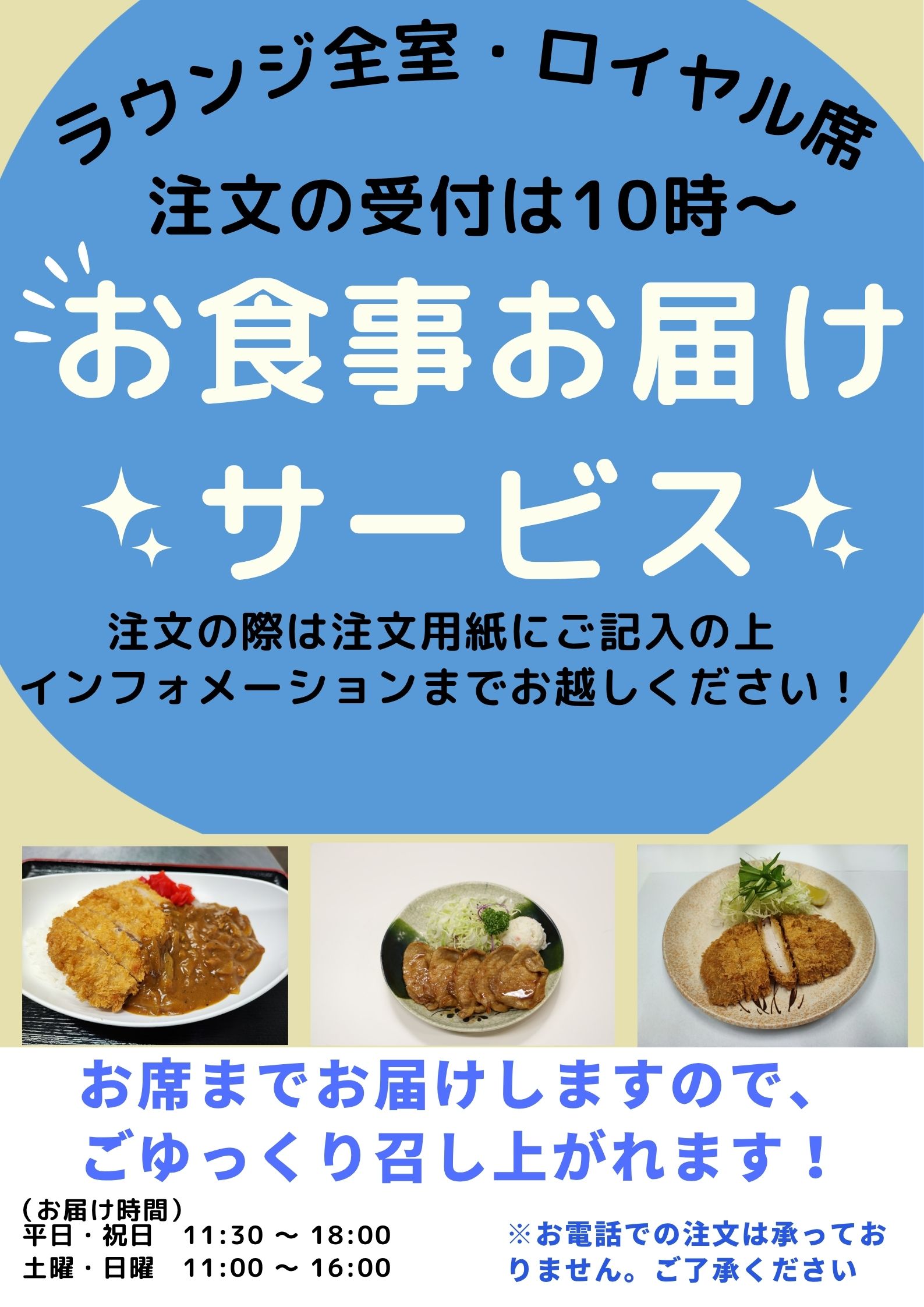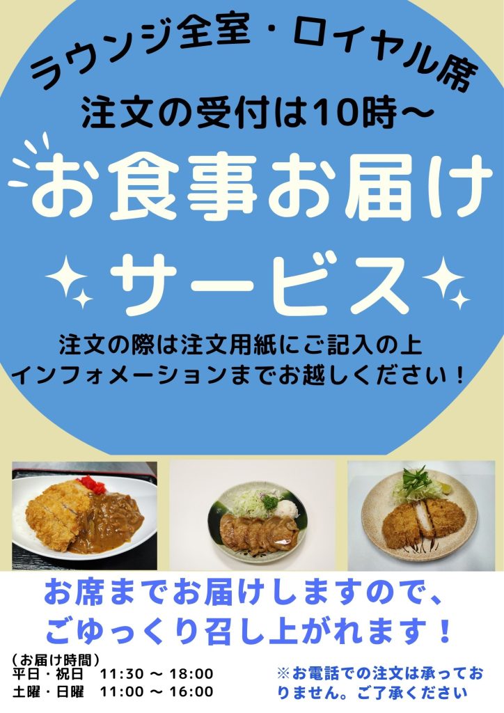 ラウンジ全室・ロイヤル席限定お食事お届けサービス実施中!