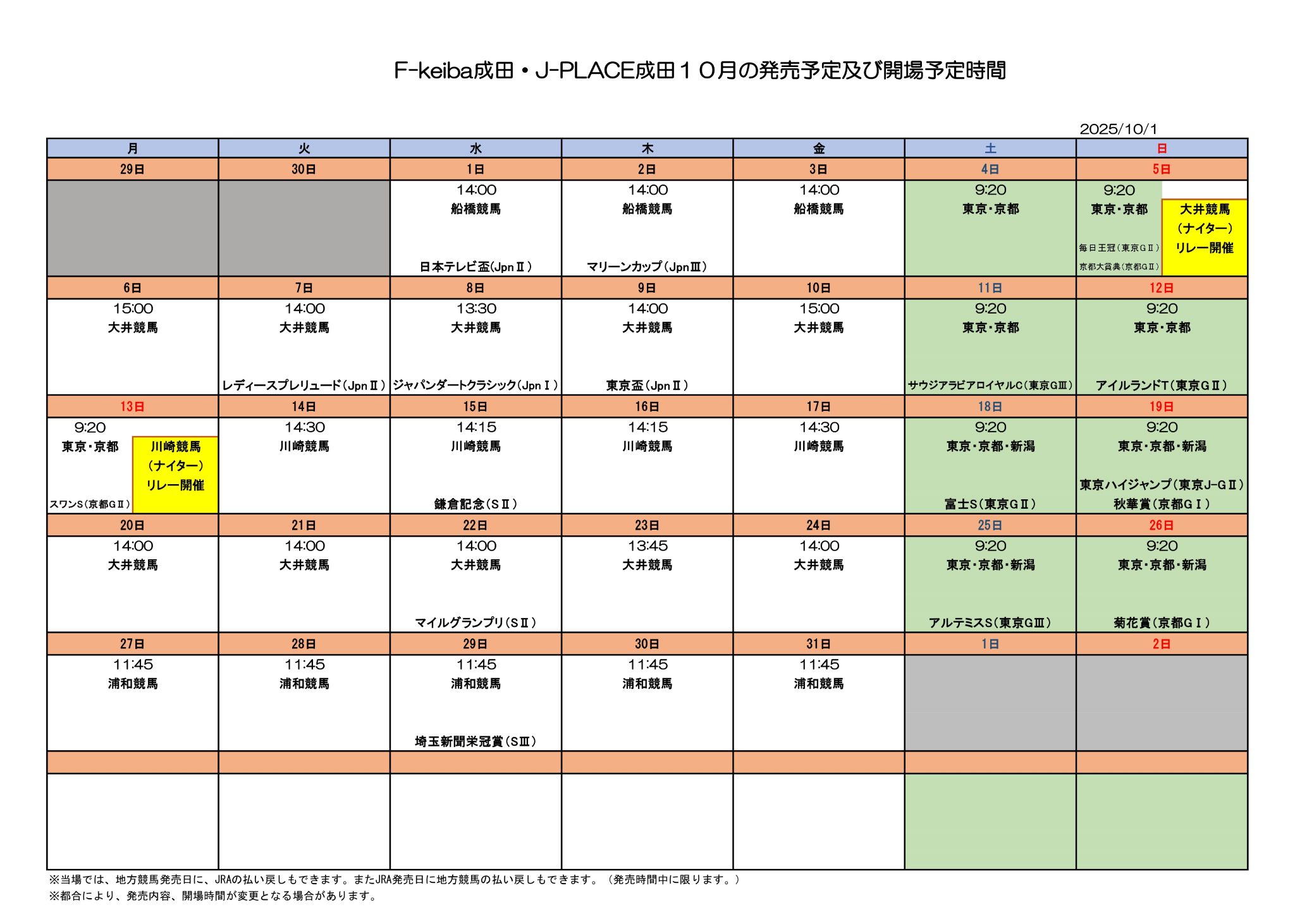 10月競馬開場時間