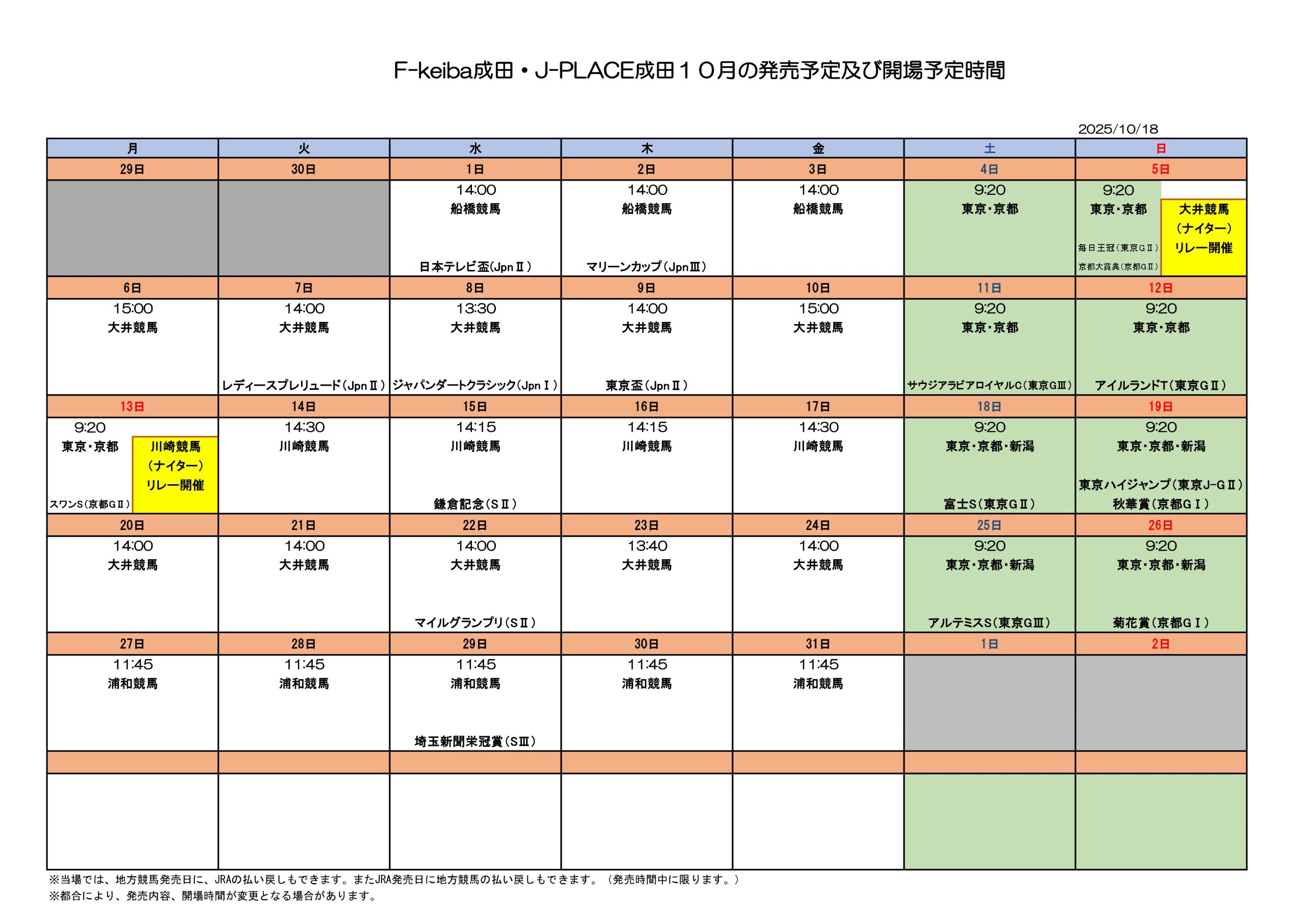 10月競馬開場時間