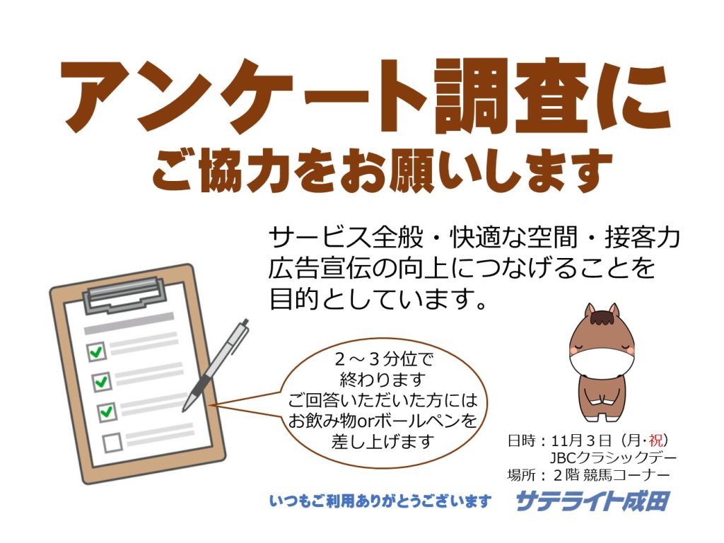 11/3にご来場していただいたお客様にアンケートを行いますのでご協力をお願いいたします。