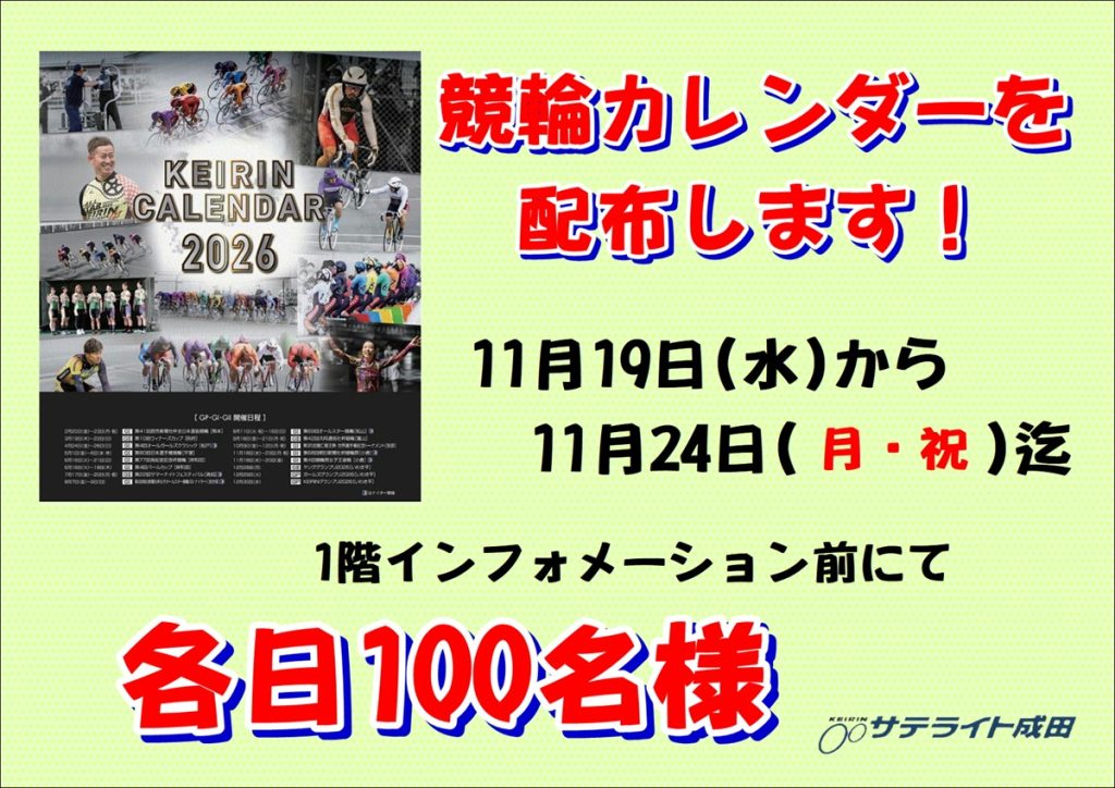 2026年競輪カレンダー配布のお知らせ