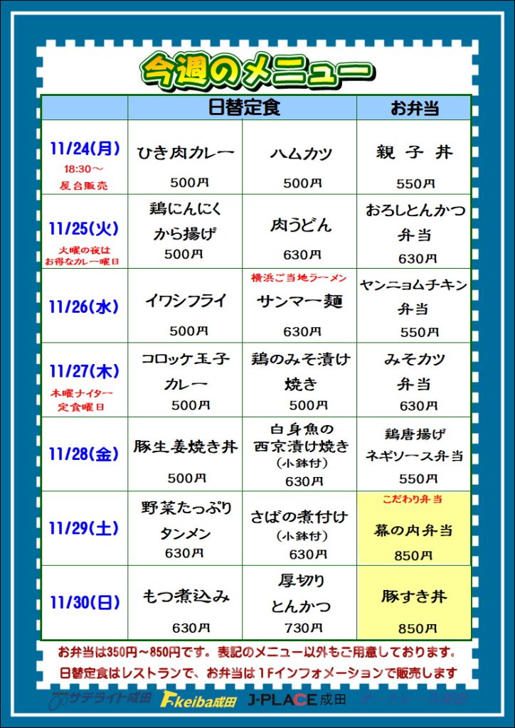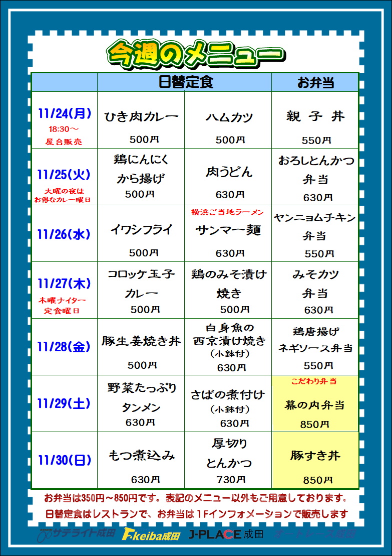 おすすめは11月30日(日)厚切りとんかつ定食です。