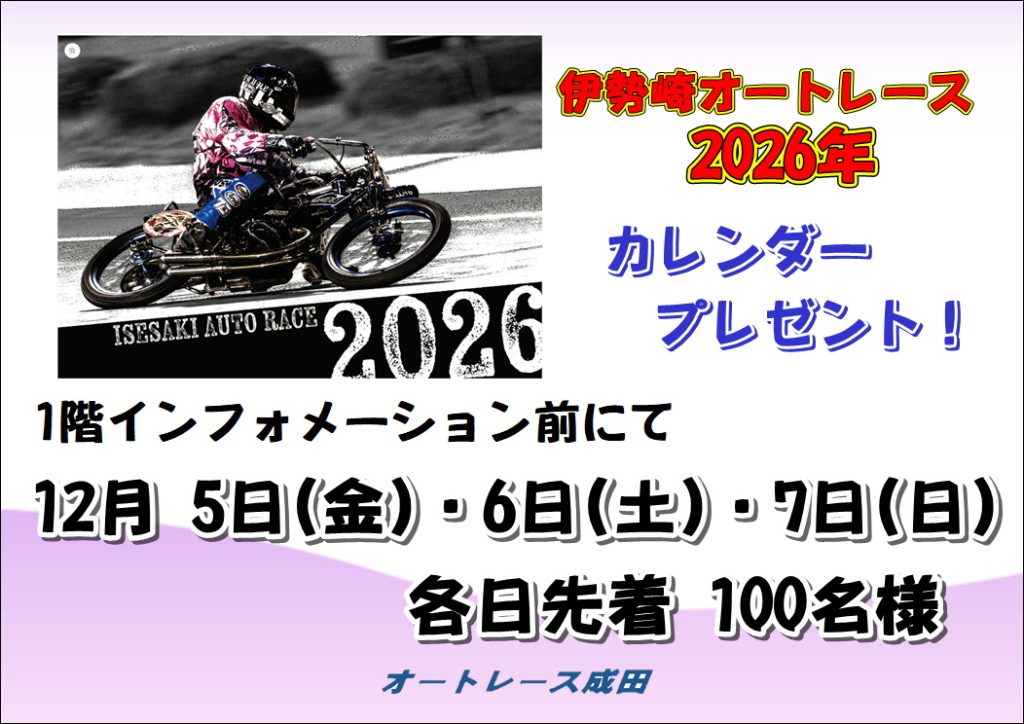 2026年オートレースカレンダー配布のお知らせ