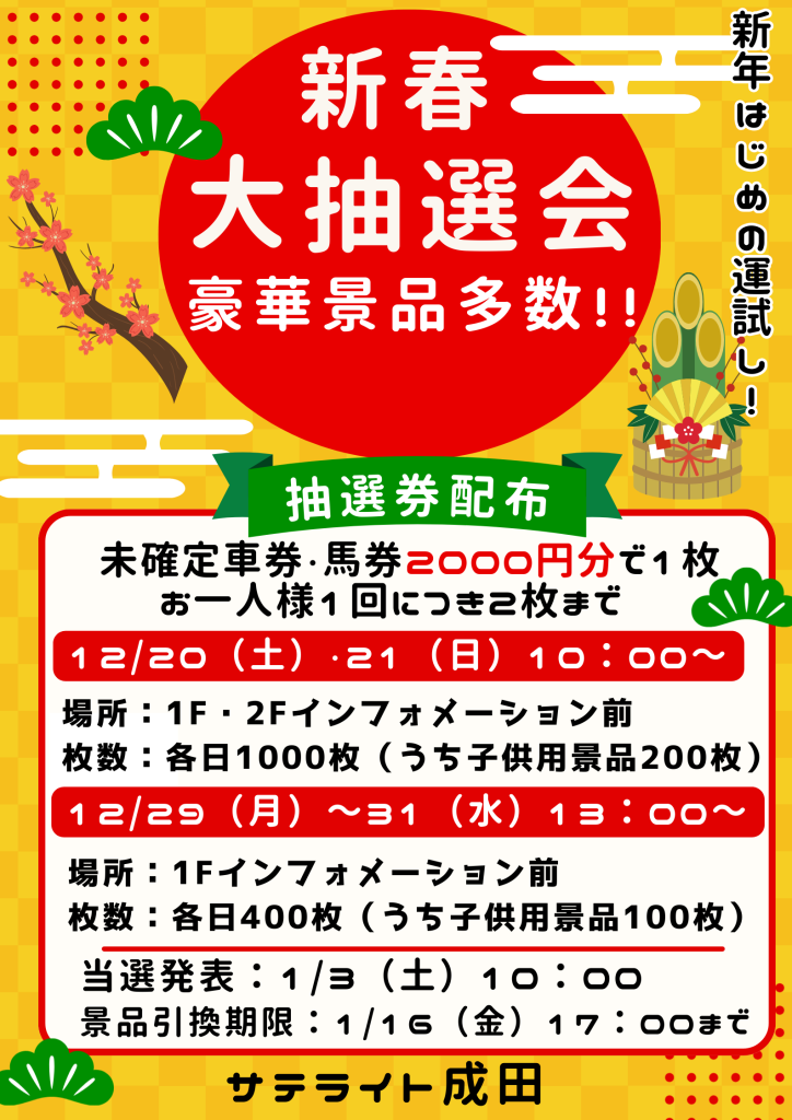 年末年始2025-2026新春大抽選会を実施します!!