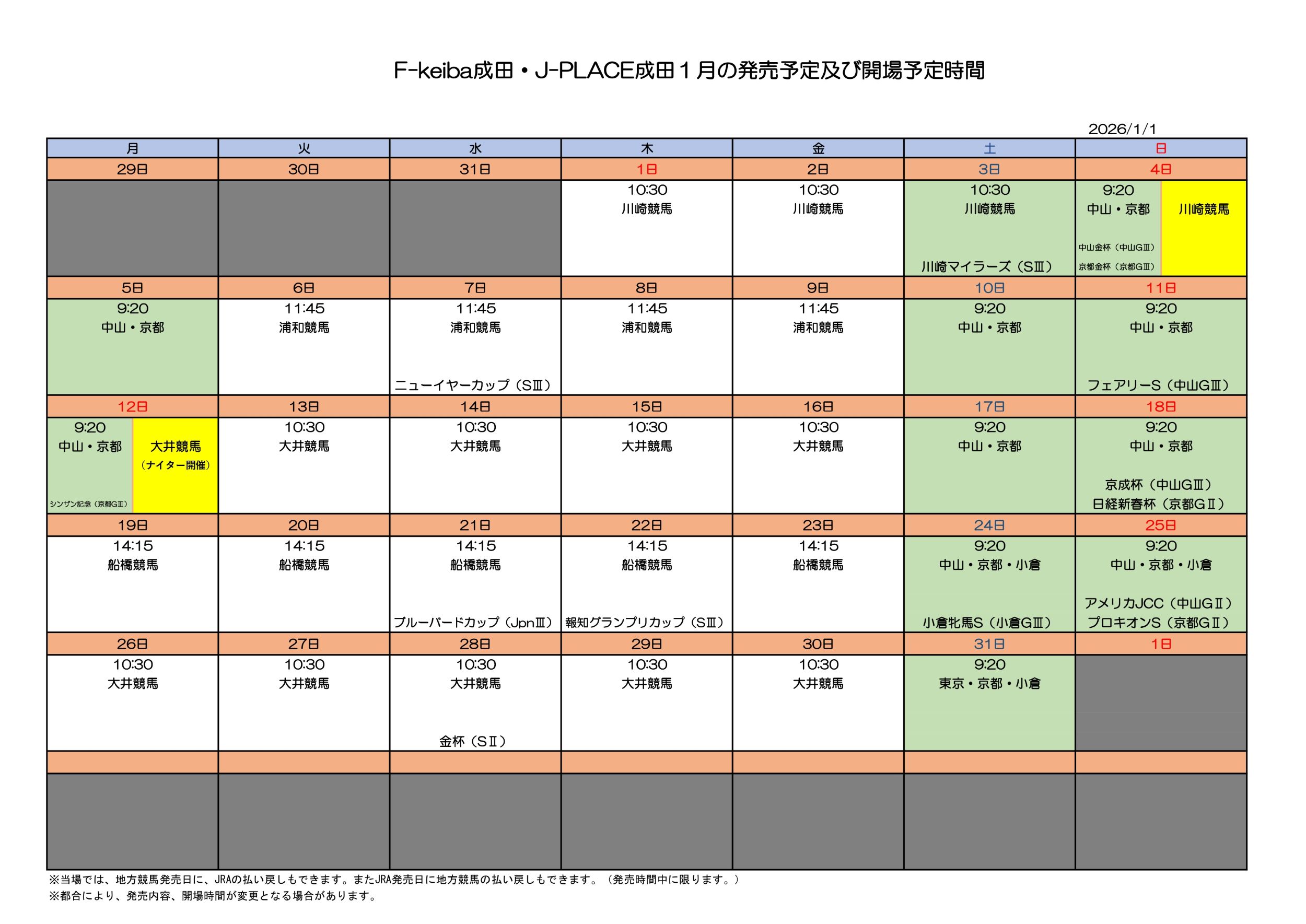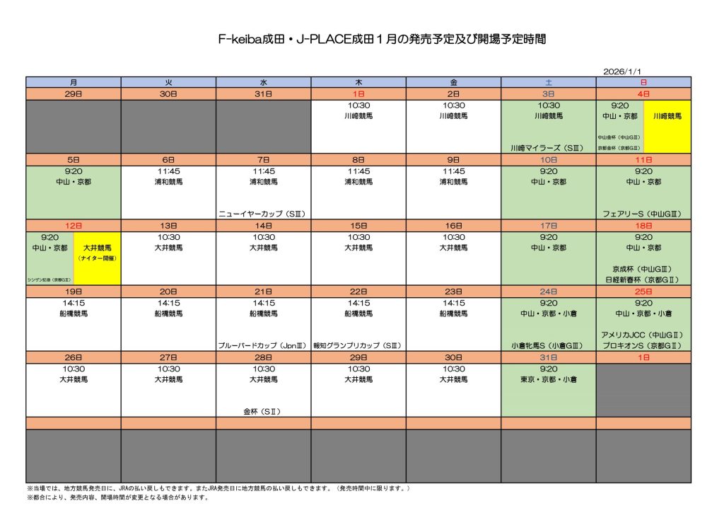 1月競馬開場時間