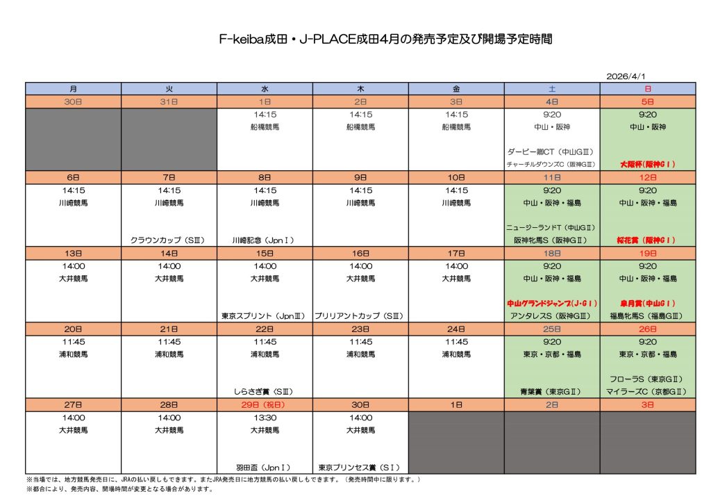 4月競馬開場時間